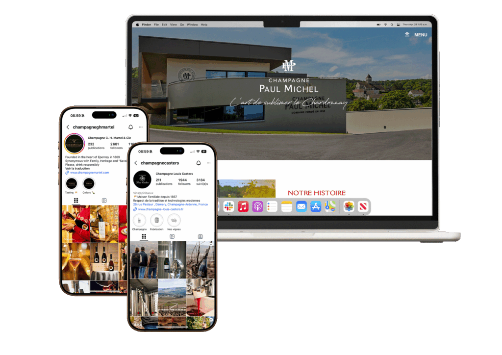 Le vin et le champagne sont des produits culturels, soumis à une forte saisonnalité, à des circuits de distribution multiples et à des attentes émotionnelles fortes. Une communication vin réussie valorise les singularités du domaine, s’adapte aux cycles de production et de vente, et adresse les bons canaux (vente directe, export, CHR, etc.).